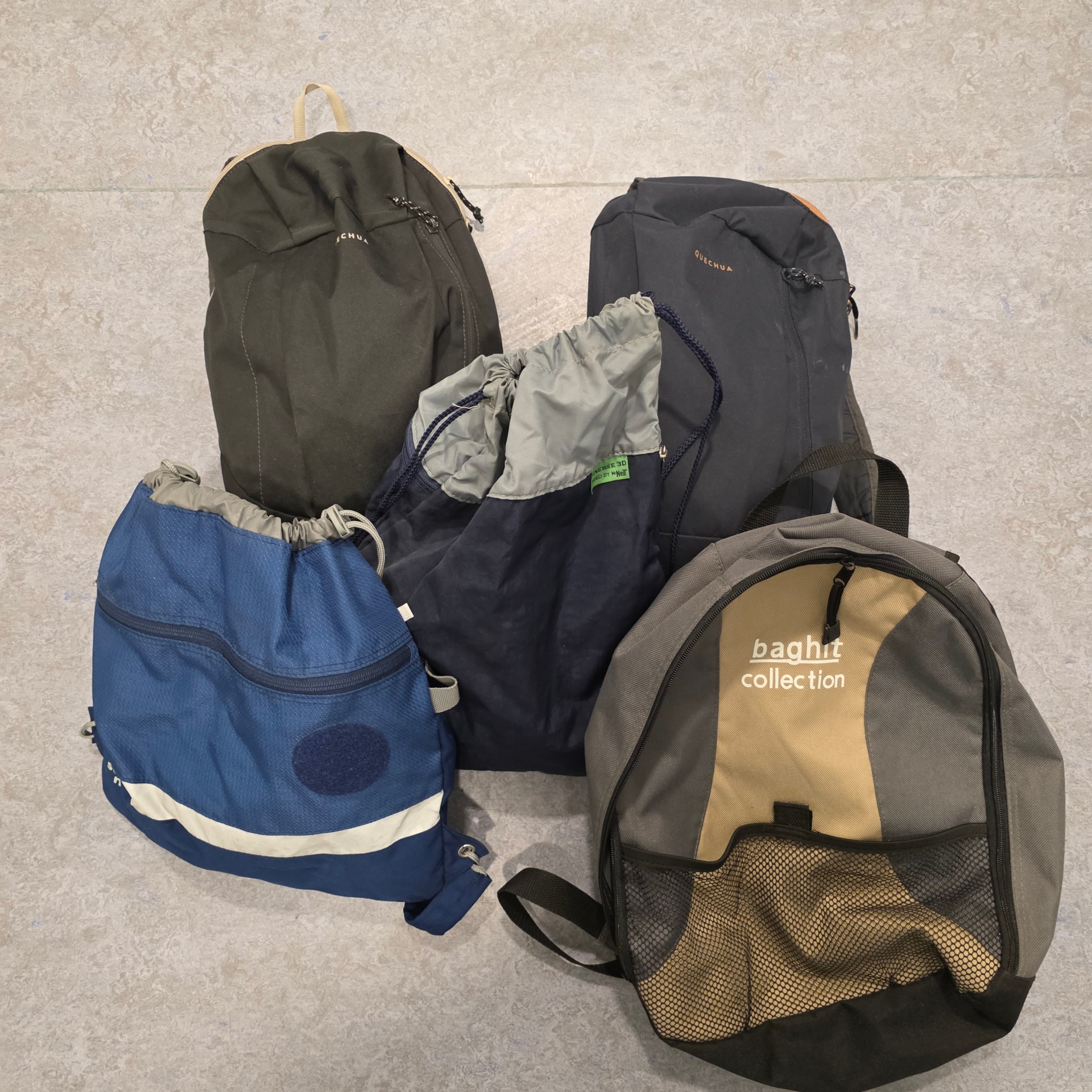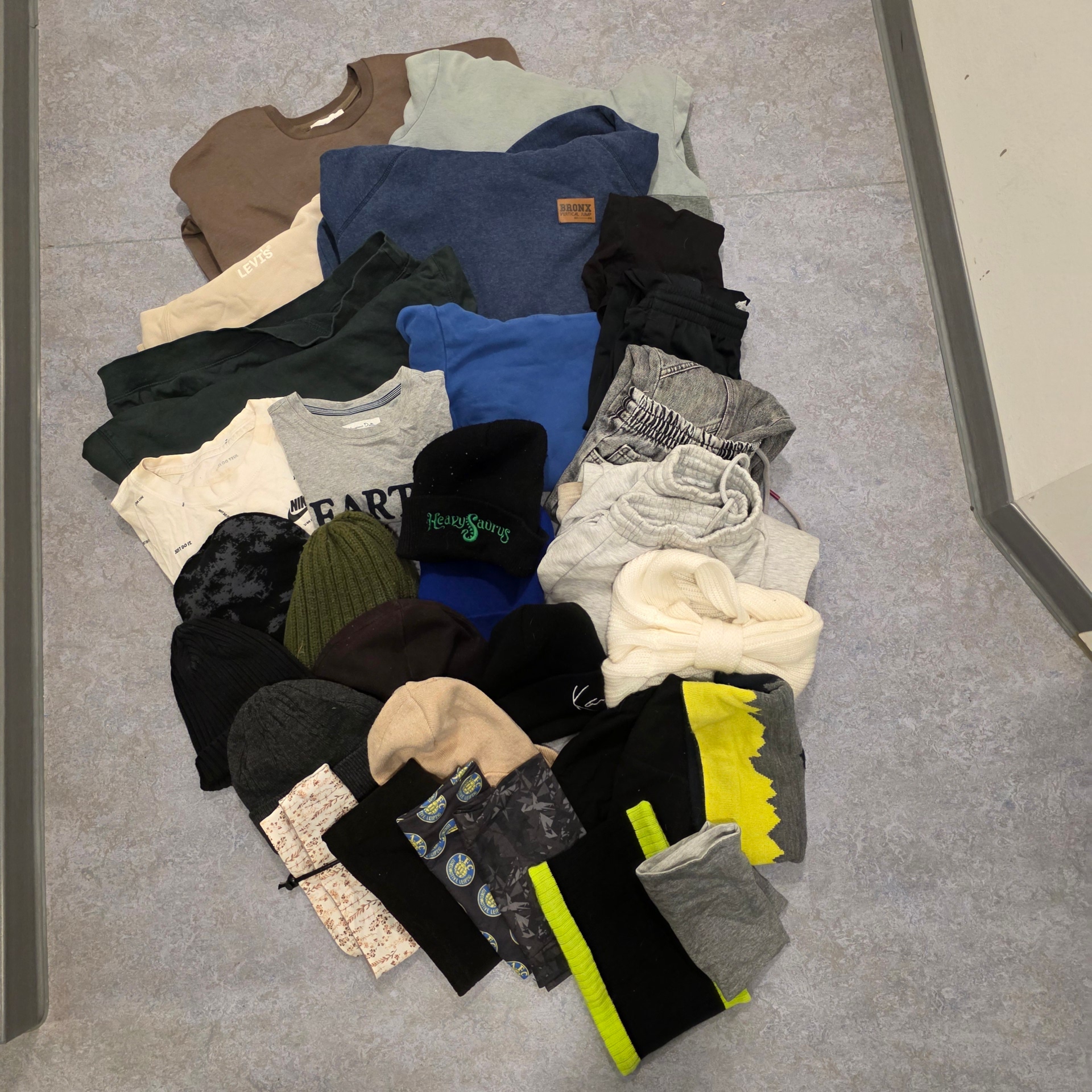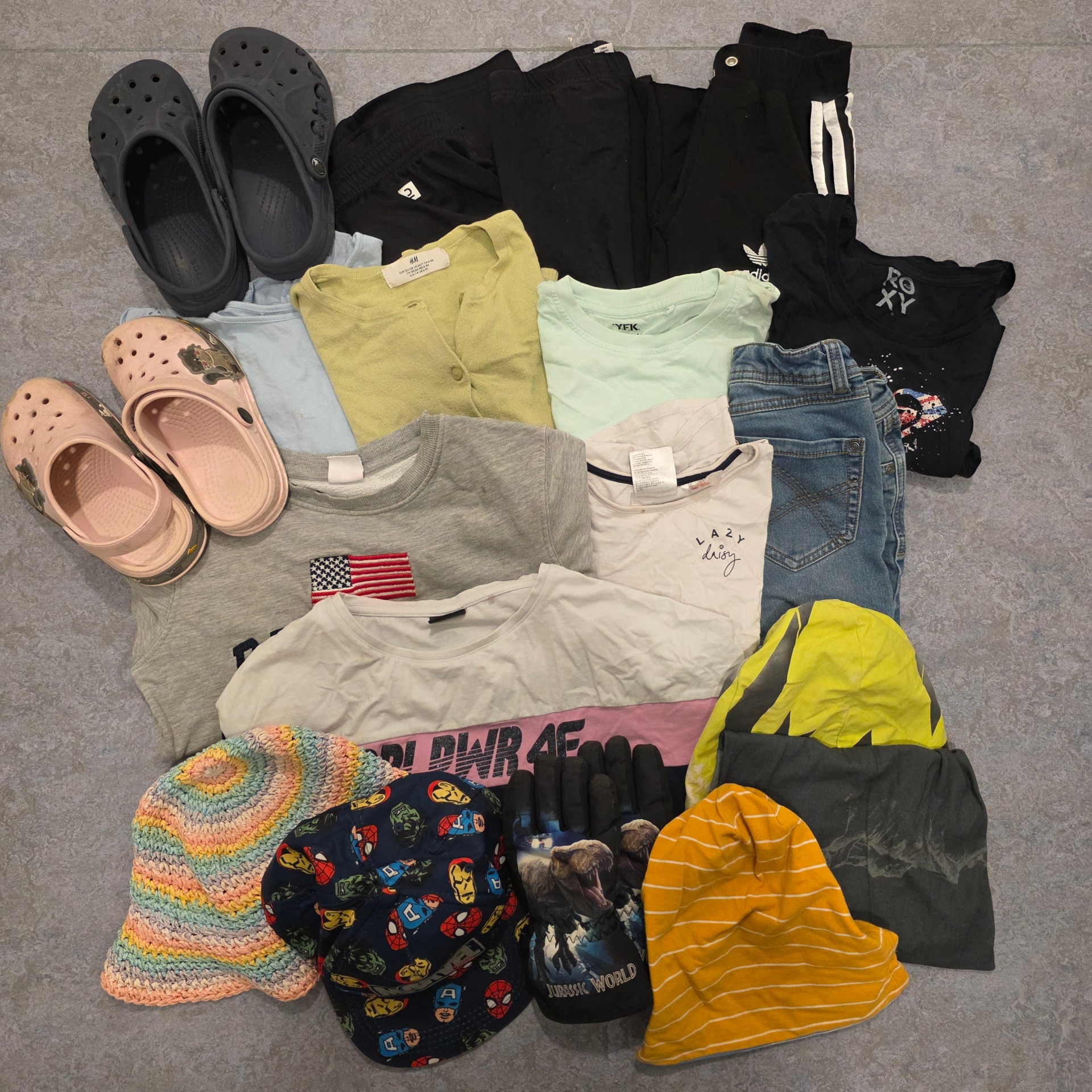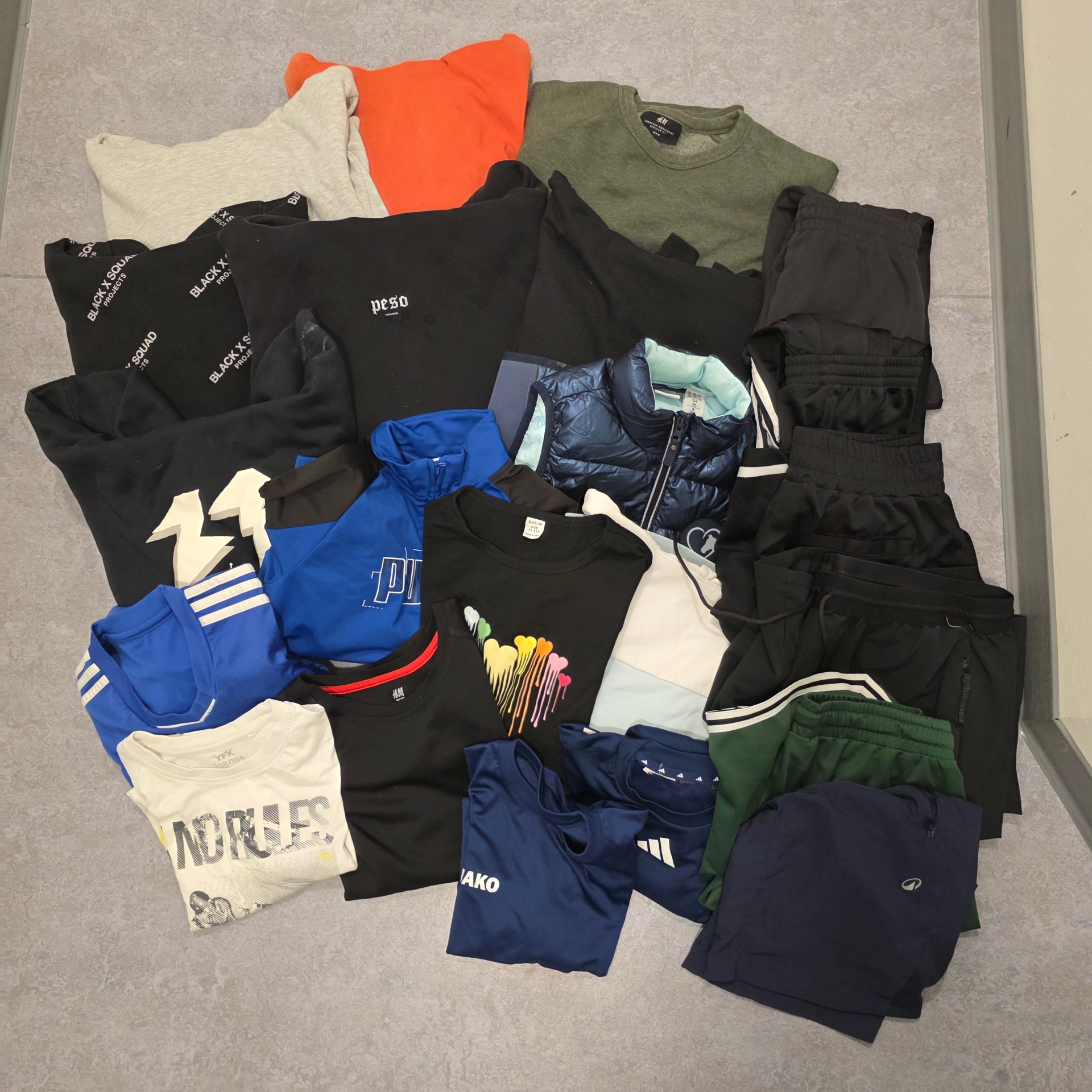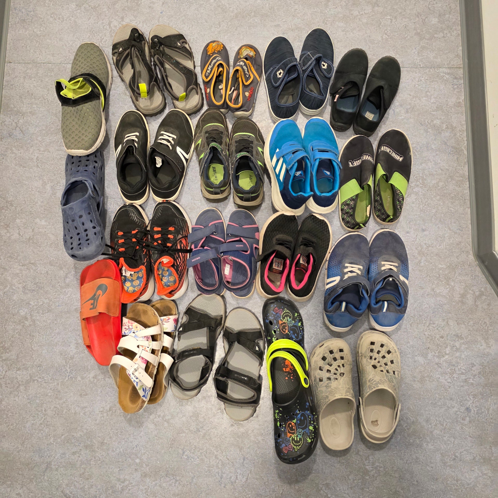 Schuhe, Regenschirme Fahrradhelm und verschiedene Base-Cup
